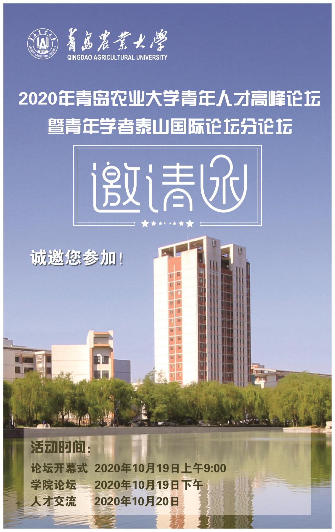 您好!根据山东省教育厅相关通知要求和太阳成集团tyc411832020年青年人才高峰论坛暨青年学者泰山国际论坛分论坛有关安排,结合我院人才发展规划,现诚挚邀请您参加tyc41183太阳成集团、草业学院分论坛活动。