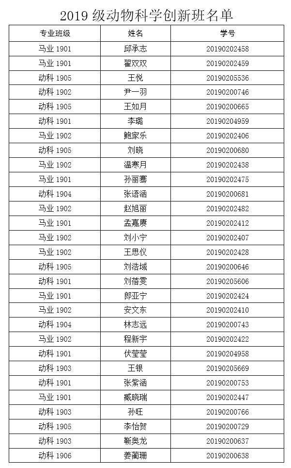 根据学院2020年动物科学创新班组建工作安排,经组织选拔评审,现将2018级、2019级创新班名单公示如下(名单见附件),公示期为3个工作日(7月10日-7月14日)。