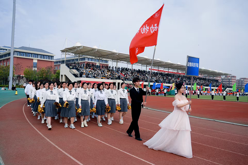 运动会期间,全院师生同心协力、各尽其责,拼搏的身影与坚守的态度在赛场内外交相辉映。开幕式上,学院方队队员身着白色衣装映衬青春脸庞,手持手拍与花球,活力满满。通过展板有序衔接,生动呈现 “强农兴农、勇攀高峰” 奋进标语,全体队员同步展示院徽,彰显农科学子使命担当;田径赛场上,动科健儿奋勇争先、热血拼搏,短跑如箭疾驰,长跑坚韧不屈,跳跃奋力腾空,投掷凝聚力量,以青春力量突破自我,用昂扬斗志点燃赛场;教职工代表队亦同场竞技、沉稳应战,在各自组别中稳扎稳打、奋勇争先,师生同台竞技、互促共进。