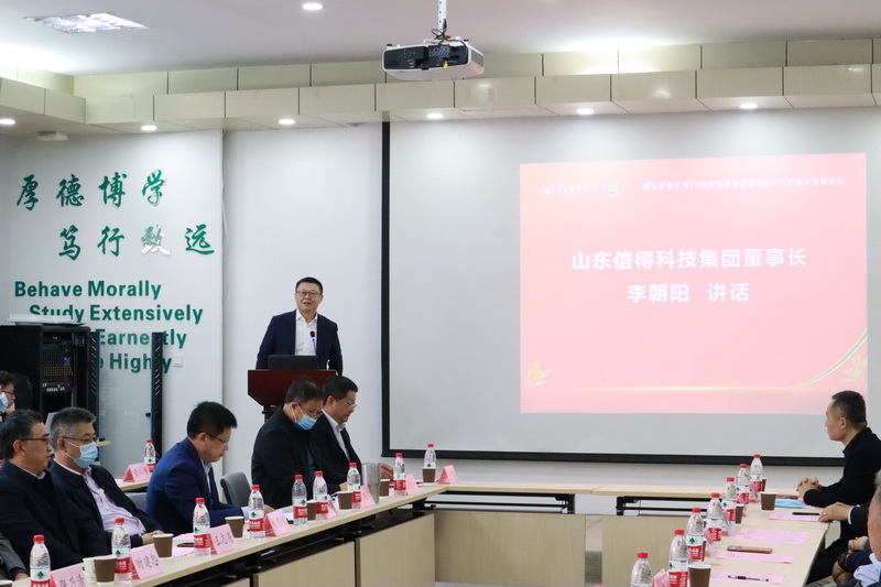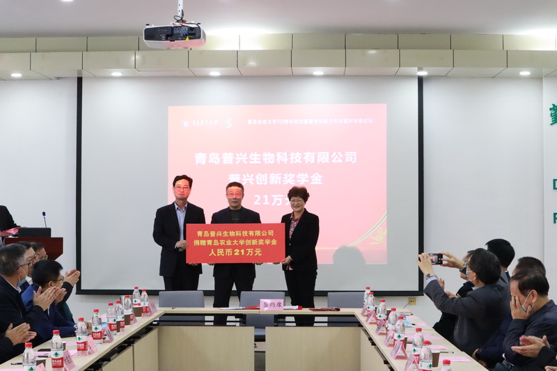 山东明发同茂饲料有限公司董事长李学东校友、山东天普阳光生物科技有限公司董事长史效华校友,产学研合作企业负责人青岛鑫光正钢结构股份有限公司董事长孙炯光、青岛科创信达科技有限公司首席执行官王福宝,分别介绍了公司概况,以及将与学院合作设立创新创业基金的有关情况。据介绍,以上4家企业,将分别出资1000万元,各自设立创新创业基金,校企双方将以问题为导向深度合作,师生以项目为参与方式,解决企业发展中亟需解决的痛点难点问题,构建人才团队—科研项目—基地平台—转移转化—社会服务一体化协同推进的科技创新模式。