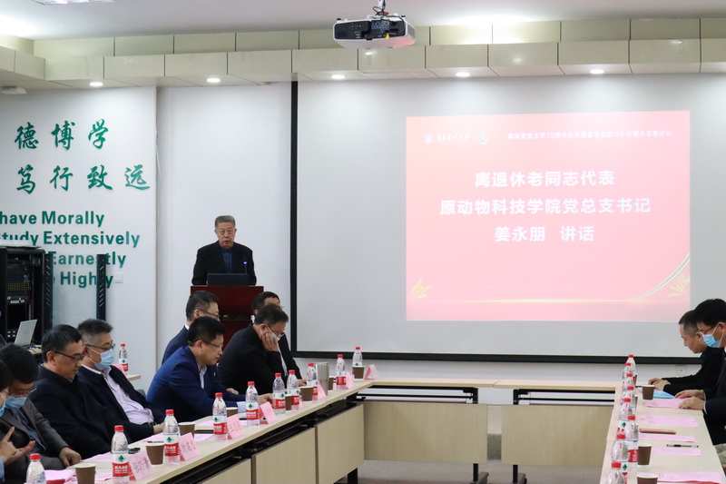 学院离退休老教师代表姜永朋讲话,对学院的建设发展给予高度评价。他指出,历届师生爱岗敬业,勤奋学习,用脚踏实地、勇于开拓,一起参与和见证了学校和学院的发展进步,不断取得辉煌的成就。校友们职业分工不同,但都保持着莱农人、青农人优良的作风、优秀的品格,而且不忘母校,不断支持母校,让我们感到骄傲和自豪。祝愿学校和学院的未来更加美好。