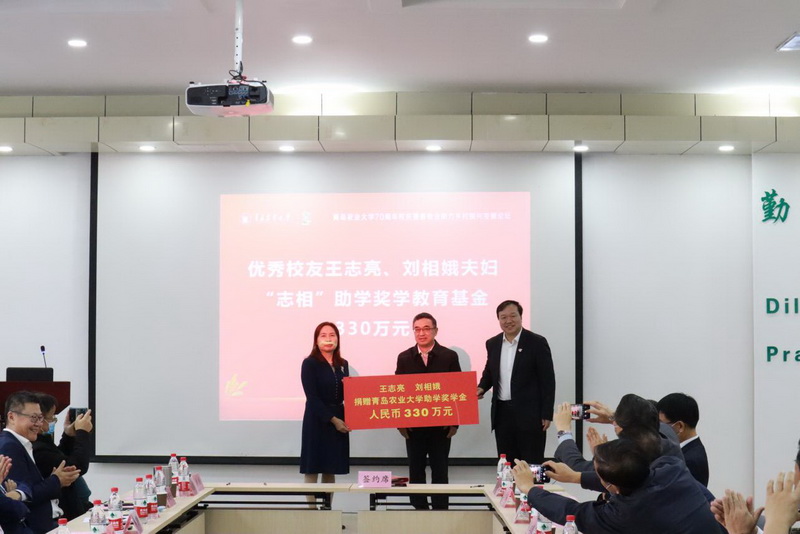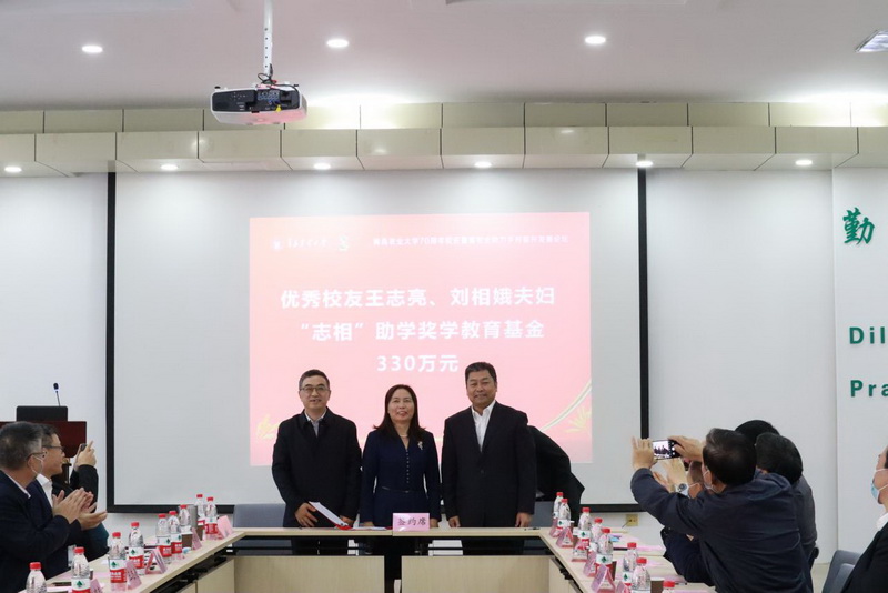 副校长朱连勤代表学校与王志亮、刘相娥夫妇签署捐赠协议