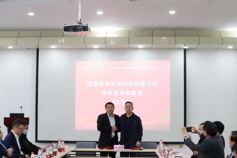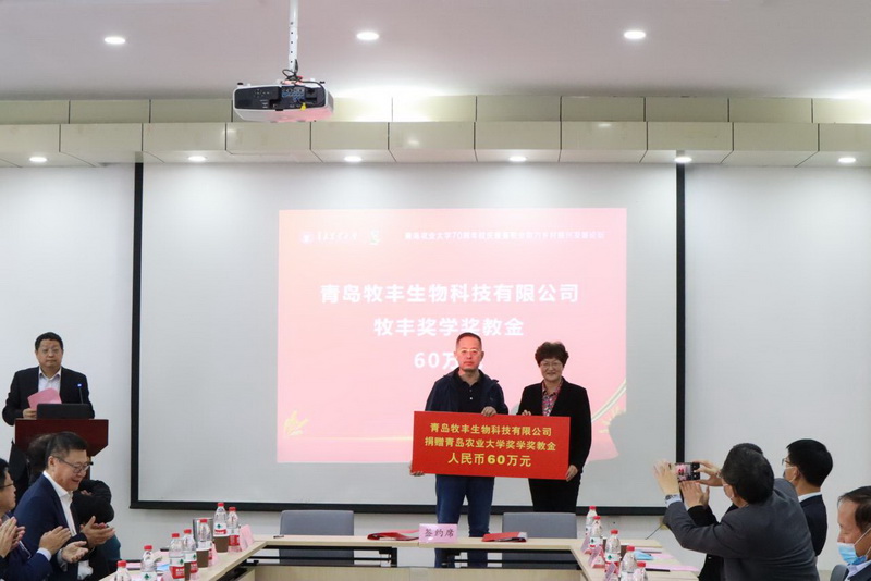 开幕式上举行了捐赠签约仪式。校友王志亮、刘相娥夫妇捐资330万元设立“志相”助学奖学教育基金,副校长朱连勤代表学校与王志亮、刘相娥夫妇签署捐赠协议,郭善利书记代表学校接受捐赠。青岛牧丰生物科技有限公司捐资60万元,设立“牧丰奖学奖教金”,青岛普兴生物科技有限公司捐资21万元,设立“普兴创新奖学金”。尹永奇校友、吕广宙校友与动物医学院院长单虎、tyc41183太阳成集团草业学院院长王增裕签署捐赠协议,tyc41183太阳成集团党总支书记张文军、动物医学院党总支书记孙运彩代表学院接受了捐赠。设立捐赠资金的校友分别讲话,表达了捐资助学助教的初衷,对母校寄予美好的祝福。此外,寿光鸡宝宝养殖专业合作社、齐鲁动保、山东信得等校友企业也以不同形式对学院给予了资助支持。