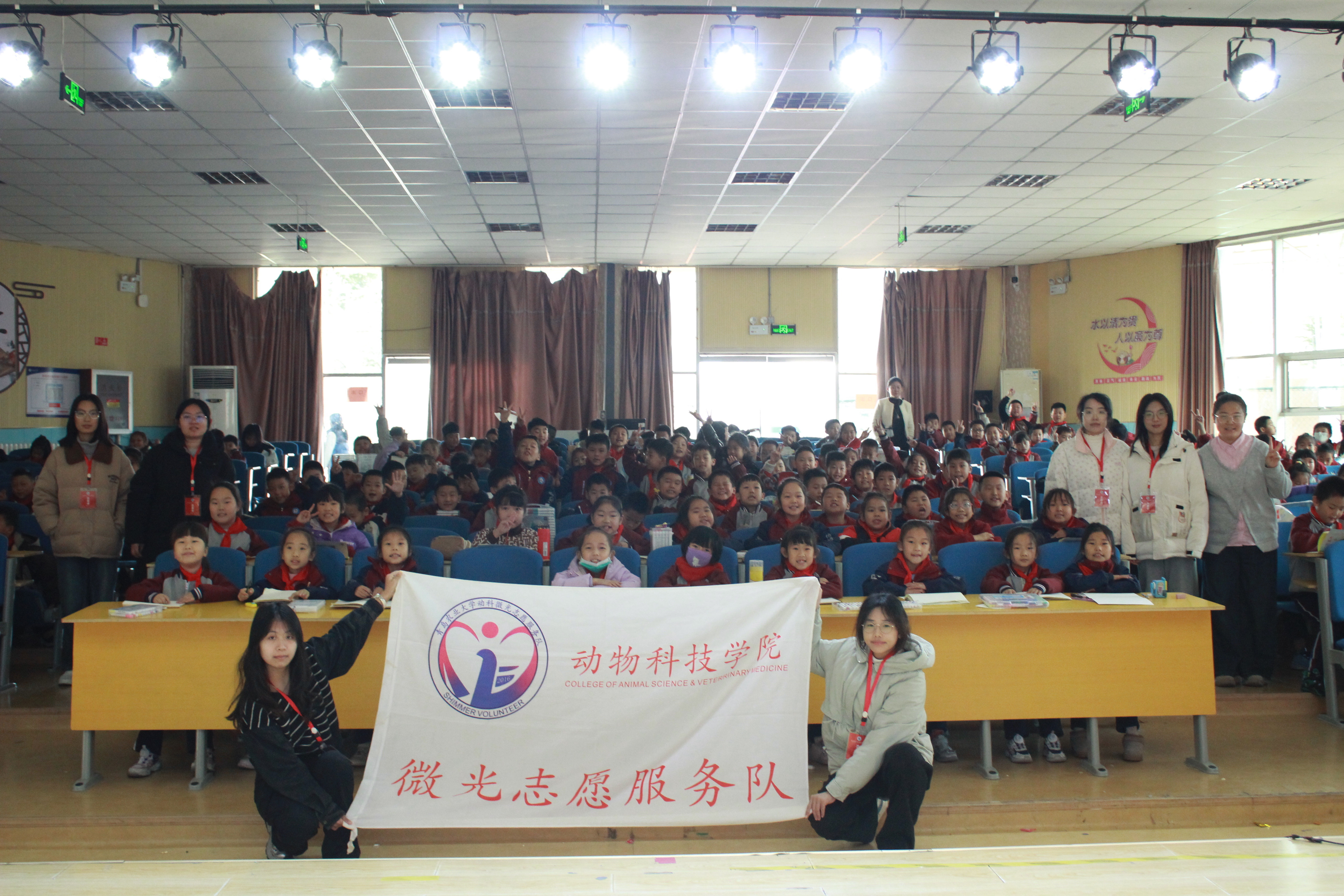 12月5日-12月6日,学院微光志愿服务队成员分别前往城阳区康贝艺术幼儿园、古庙小学开展“神奇的动物世界”课程,总计参与学生290余人。