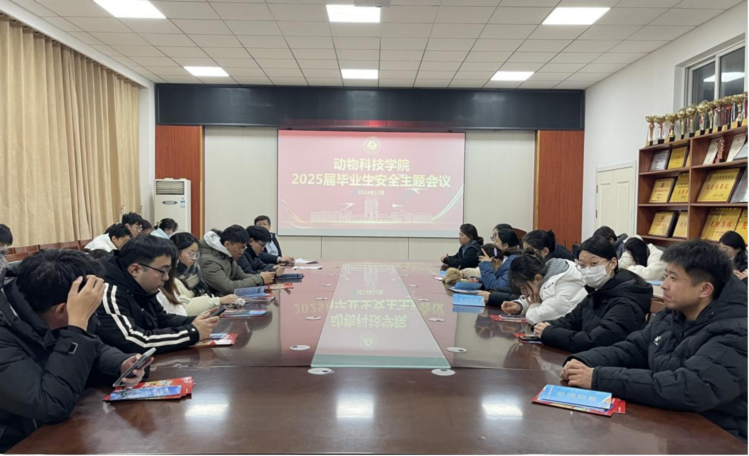 为切实抓好学院毕业生安全教育工作,提高毕业生的安全防范意识,12月23日,tyc41183太阳成集团召开2025届毕业生安全专题会议。学院党委副书记、副院长辛丽轲,团委书记范楚琦,学院辅导员顾宜凯以及毕业班班长、团支书、宿舍舍长参加本次会议。