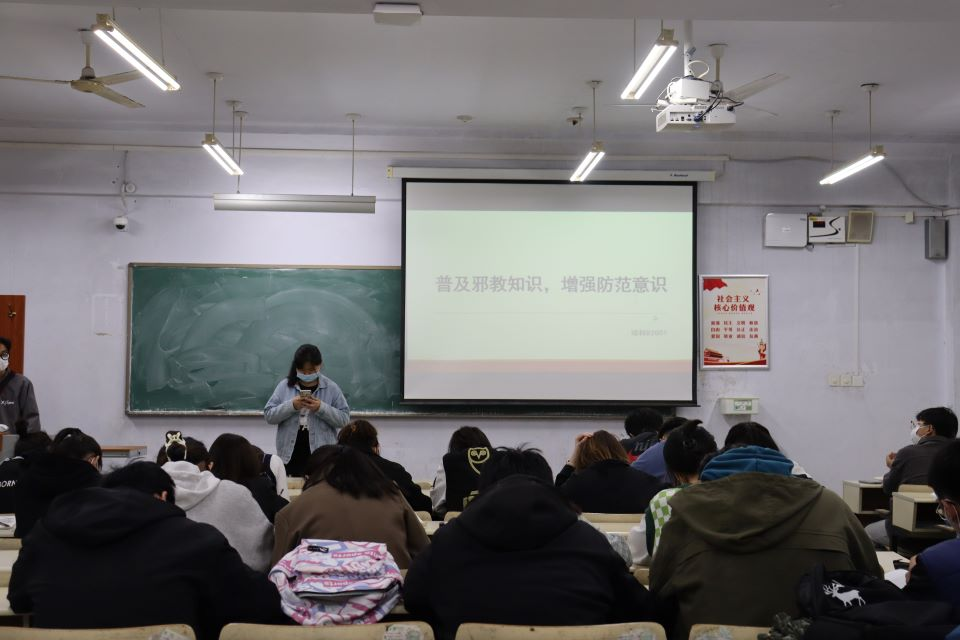 在做好疫情防控工作的前提下,政治学习由各班负责人有序开展国家安全及反邪教主题教育。在国家安全教育学习中,负责人带领同学们通过什么是国家安全和国家总体安全观,国家安全包括的领域及相关法律,公民在维护国家安全中享有的权利和应尽的义务等方面展开学习,提醒学生警惕危害国家安全的活动并提出相关应对方法。反邪教主题教育从什么是邪教、邪教的基本特征、邪教的主要侵害对象、邪教和宗教的区别、遇到邪教活动如何应对和当前邪教的主要活动方式六个方面展开学习。与会学生积极配合,认真学习并做好笔记。