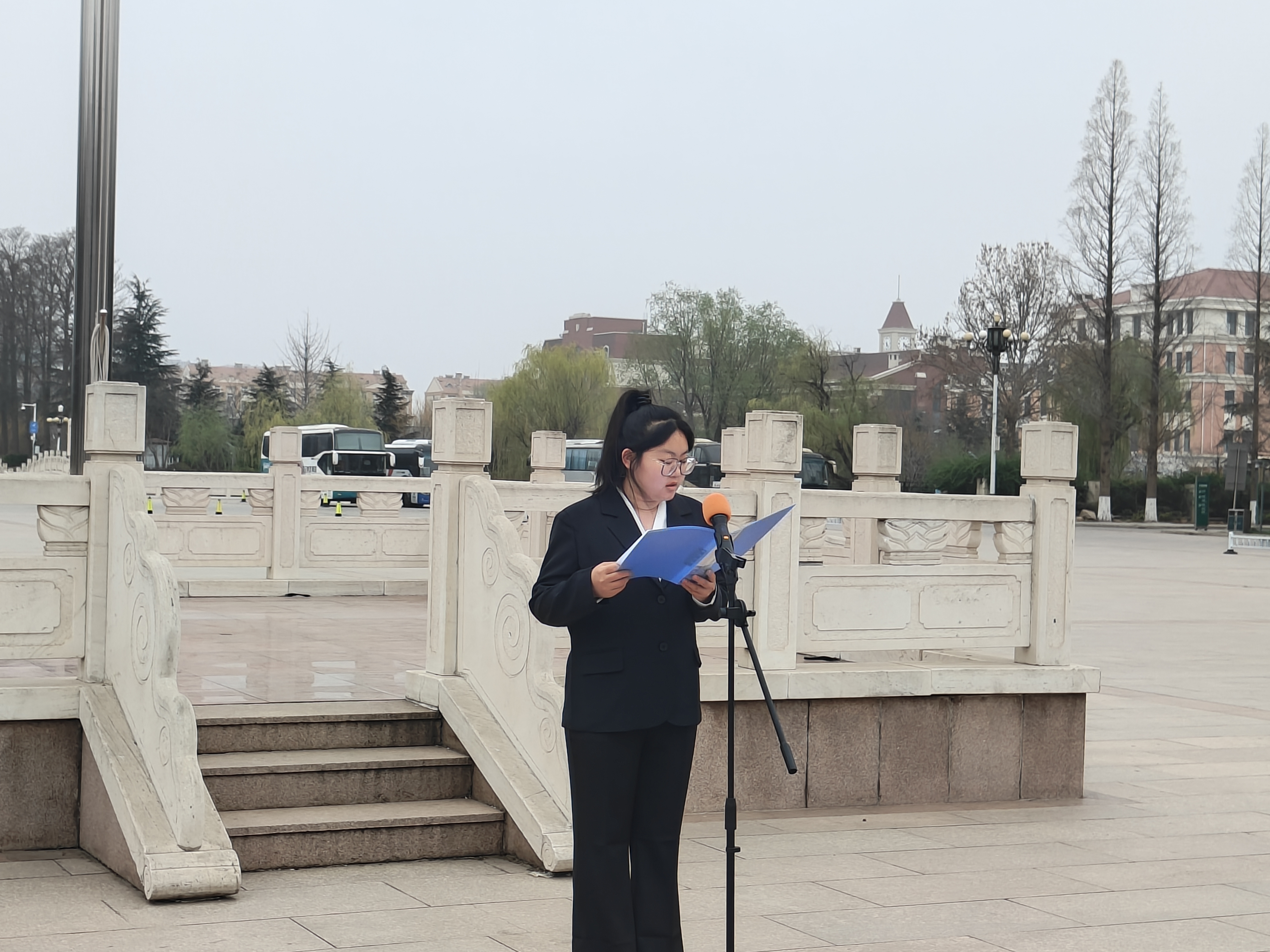 范楚琦在国旗下的讲话中强调,同学们要时刻牢记习近平总书记对新时代青年的殷切嘱托坚定不移听党话、跟党走,她向同学们提出三点希望:一要铸牢忠诚之魂,将个人理想融入强国建设、民族复兴伟业;二要锤炼实干之风,在学习科研、服务“三农”中精进本领;三要传承青岛农大精神,争做愿担当、敢担当、善担当的动科青年。