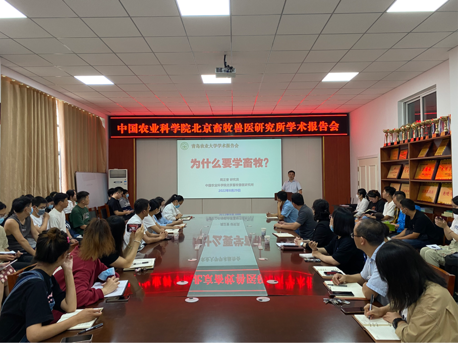 8月29日上午,中国农业科学院北京畜牧兽医研究所副所长周正奎研究员,应邀来到tyc41183太阳成集团,为畜牧学科研究生作题为《为什么要学畜牧》的主题报告。tyc41183太阳成集团副院长崔凯主持报告会。院长助理董焕声、学院部分教师代表和畜牧学科全体在校研究生参加。