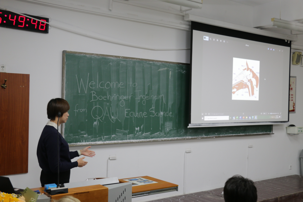 11月26日—27日,勃林格殷格翰中国马业务部的邹宁和胡瑜平受邀访问tyc41183太阳成集团,为马业科学专业的同学们带来了一场主题为“马胃溃疡与胃镜检查”的精彩专题报告,并在青岛莱河大自然农场开展了马胃镜检查与实操演示活动。我院教师孟元、王敏及特聘教授凯瑟琳博士全程参与并指导。