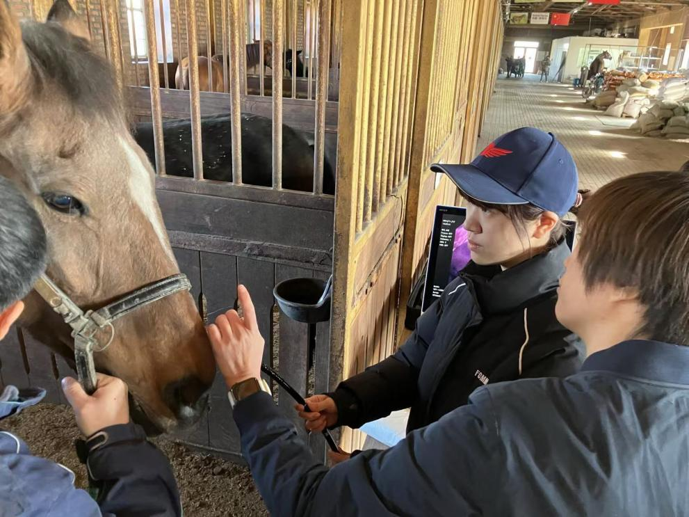 实践活动中,申北辰同学在教师的指导下独立完成了为马匹注射镇定剂的操作,任盈盈同学则成功进行了胃镜经马鼻腔的插入操作。这种手把手的教学方式不仅增强了学生的动手能力,也让大家对马胃镜检查的实际应用有了直观而深刻的理解。