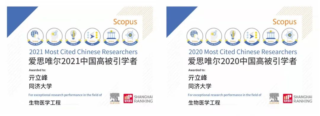 日前,爱思唯尔(Elsevier)正式发布2021“中国高被引学者”(Highly Cited Chinese Researchers)榜单,太阳成集团tyc411831997级校友、同济大学医学院亓立峰研究员入选,入选学科为“生物医学工程”,这是他连续第二年入选该榜单。