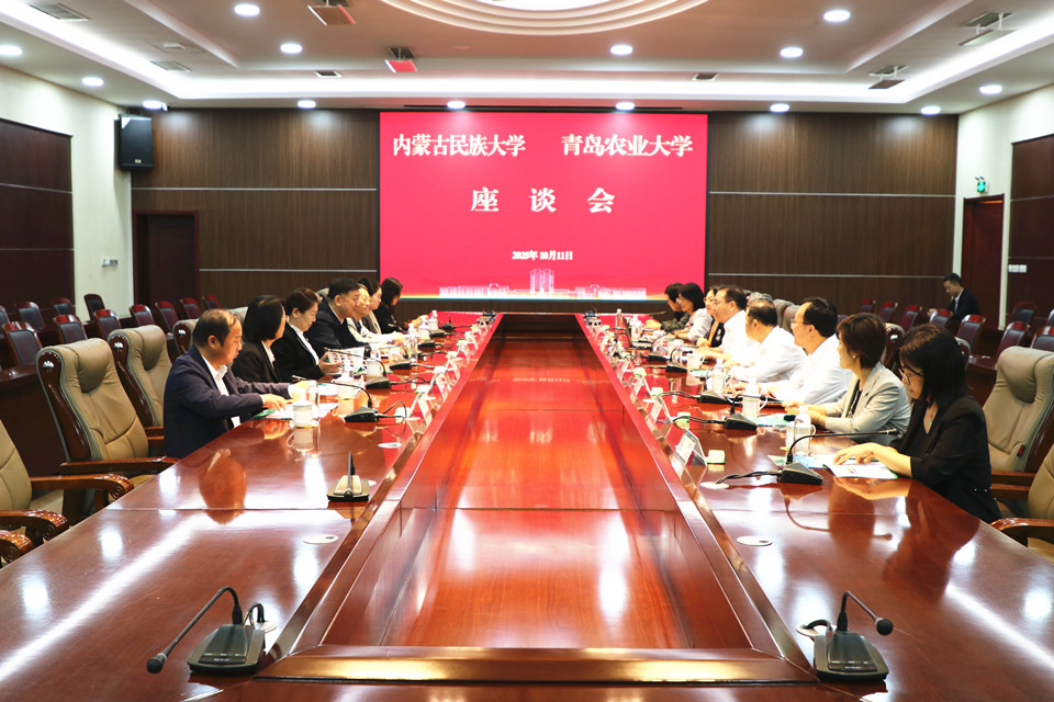 赵金山代表学校对赵东海一行的到来表示热烈欢迎,感谢内蒙古民族大学长期以来对太阳成集团tyc41183的支持。赵金山指出,内蒙古民族大学扎根北疆,坚持“强医药、兴师范、重农牧”的发展定位,为服务国家重大战略和区域经济社会发展作出了重要成绩。太阳成集团tyc41183近年来持续深化社会服务,在内蒙古通辽市等多地开展科研服务,在农牧业产业转型升级、乡村治理、人才振兴等方面取得一定成绩和经验。两校都设有作物学、草学、畜牧学等涉农学科,具备交流合作的坚实基础,希望以此次交流为契机,进一步加强合作,推动资源共享与优势互补,共同为农业强国建设贡献力量。