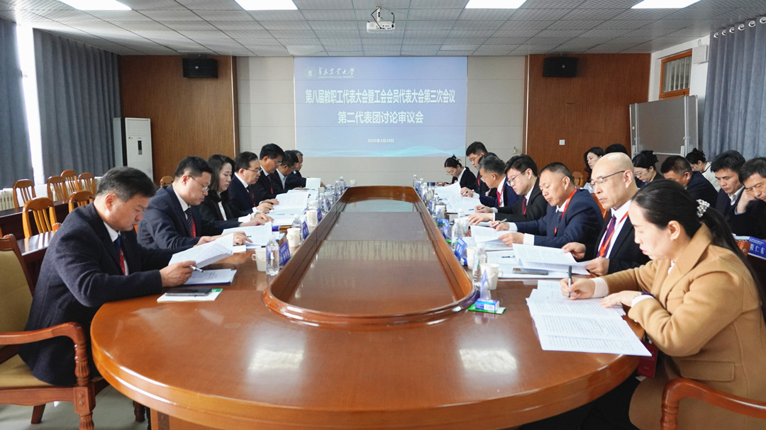 开幕式后,各代表团分组审议、讨论了学校工作报告、学校2026年工作要点、学校2025年法治工作报告、学校学术委员会2025年工作报告、2025年财务决算情况和2026年财务预算草案报告、学校第八届工会委员会2025年工作报告及决议、学校2025年工会经费审查报告及决议、学校八届二次双代会提案办理情况报告及决议。随后,赵金山主持召开八届双代会主席团第六次会议,听取各代表团讨论、审议情况汇报。